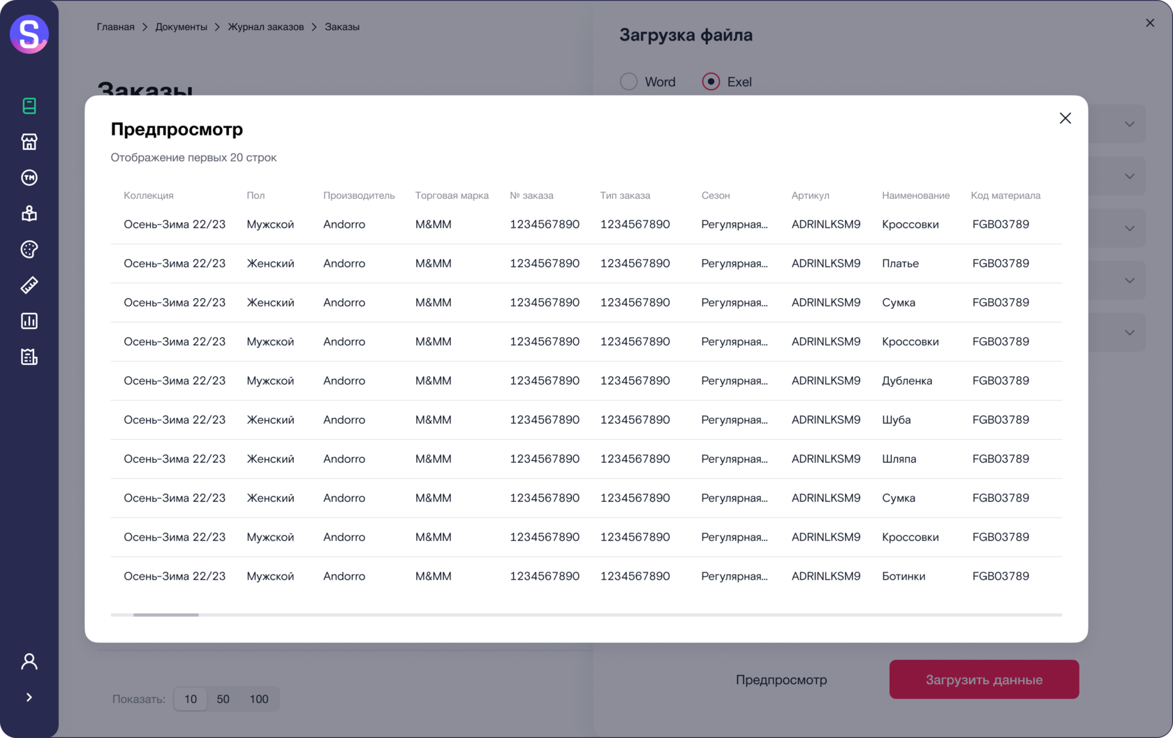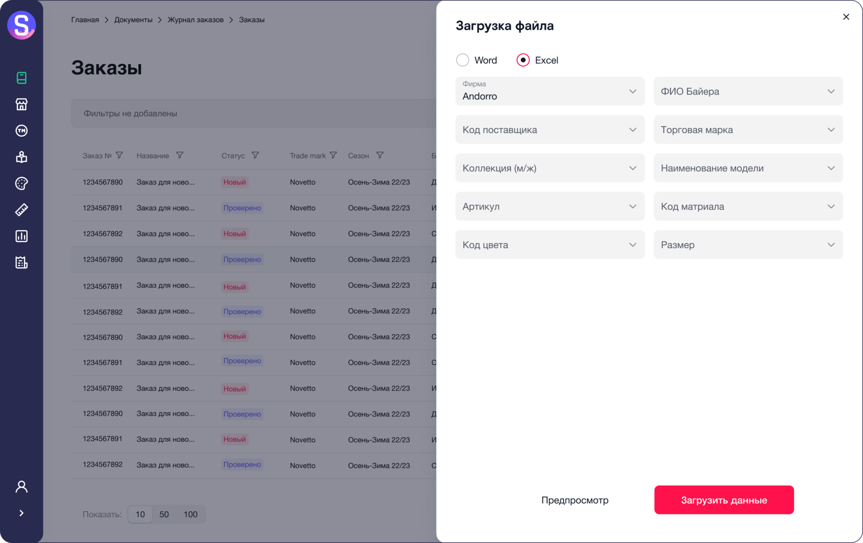 для работы с размерами и товарной матрицей, возможность увидеть оперативно всю статистику по заказу. Уже на этом этапе можно внести необходимую информацию для ФТС, для избежания проблем на этапе таможенной очистки.